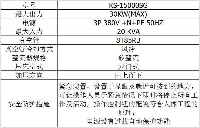 駿精賽呼吸面罩熱合機15kw高周波熱合機,800*1000機臺面積,裝配了防打火裝配,能夠挑選設置裝備擺設PLC觸摸屏人機界面。應客戶請求接納傳統的手推式滑臺布局,龍門式機頭安穩撐持模具,熱合不變壓痕平均。雙電動滑臺設想,高頻電流(VC、交聯)電動調理裝配,高壓變壓器五檔可調,雙滑臺可同時利用不同規格的模具停止出產。